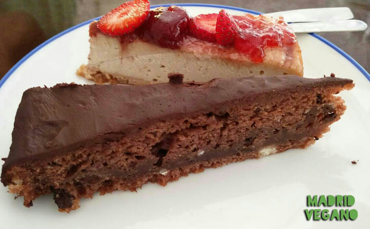 En este punto deberíamos haber dejado de comer…, pero no seríamos nosotros, si nos fuéramos de un restaurante vegano sin tomar postre. Finalmente probamos la tarta de queso, que estaba muy buena, y la de chocolate, también estupenda. Aquí la elección dependería de los gustos de cada uno e igualmente apreciamos el toque casero. Así concluíamos nuestra visita a Pura Vida Bar Vegan, después de haber sido tratados y haber comido muy bien. Apuntamos dos notas: nos quedamos con ganas de probar sus pizzas elaboradas en un horno italiano y nos confirmaron que cuentan con opciones para personas celíacas.